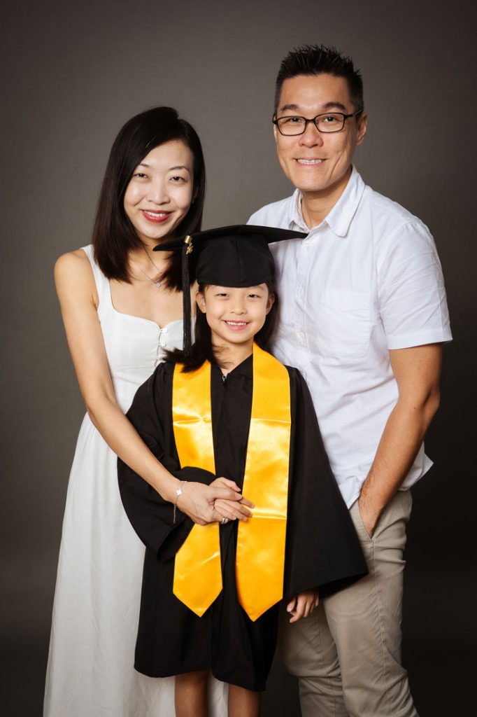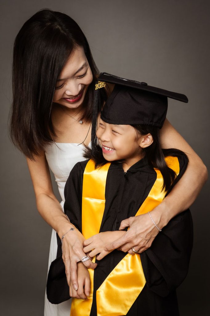 Creative, Fun and Natural k2 Graduation Family Photography with the entire family in our natural light photostudio! k2 Kindergarten graduation gowns provided complimentary and we have many different designs for your little one to choose from. From the classic black, to stylish navy blue to even shades of the sweetest pink!
