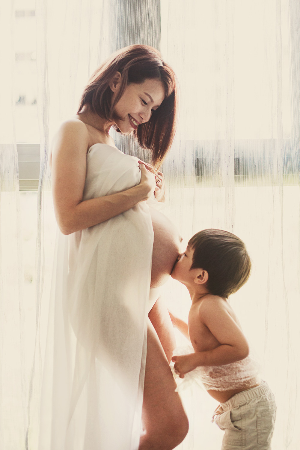 Maternity shoots, will be done with a unique blend of natural light and studio lighting. Each image developed after your maternity photoshoot with us will be an art piece to behold. To ensure total privacy during your pregnancy photoshoot, our photo studio in Singapore will be locked, and only Melody will be present. Explore artistic semi-nude shoots or have a fun, heart-warming session. Whatever your heart desires, we are here for you! See more inspirational images below and have a chat with us to organise your bespoke Maternity shoot in Singapore!