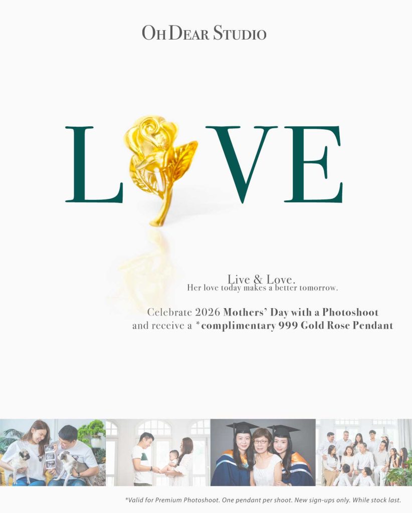 This Mother’s Day, give Mum the gift she truly deserves. A beautiful family photoshoot to treasure for a lifetime. Book your session with us and receive a complimentary 999 pure gold pendant (from Taka Jewellery), exclusively for every mum who walks through our studio.