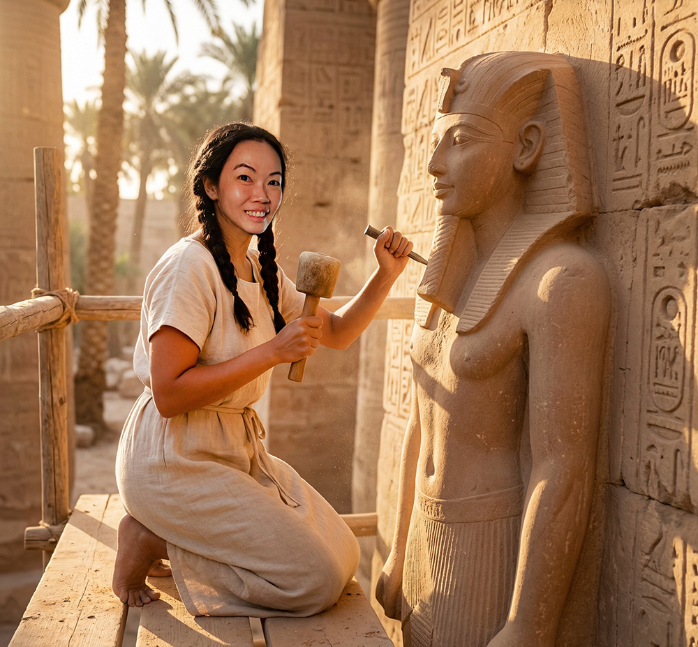 Though let’s be honest, most school photos make us look like we just woke up. The Egyptians didn’t have that problem because the artist could just… make them look better. Your nose too big? Not in the painting! Bad hair day? Fixed! They basically invented Photoshop, except it took six months and required a lady named Hatshepsut with a chisel.